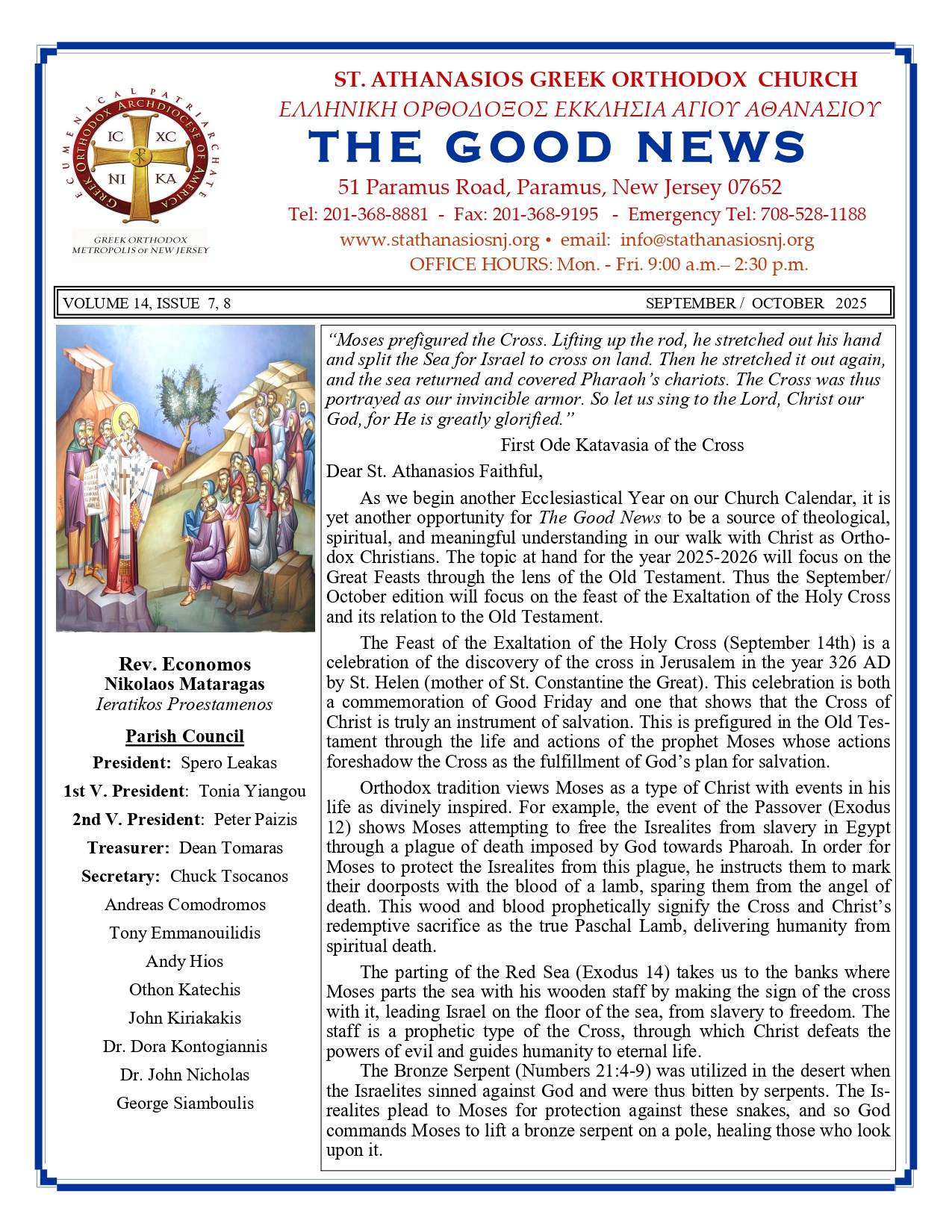 51 Paramus Road, Paramus, NJ • (201) 368 – 8881 • Rev. Economos Nikolaos Mataragas, Proestamenos